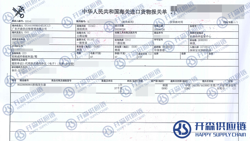 一、深圳機場韓國X射線設(shè)備進口報關(guān)代理案例詳情