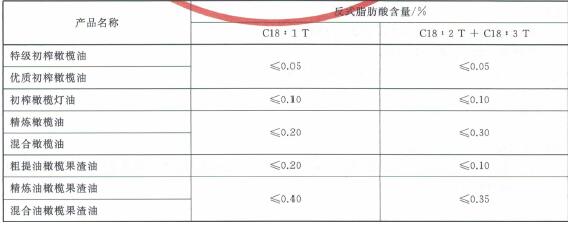 新增初榨橄欖燈油和混合橄欖油的限量,具體指標見下圖。