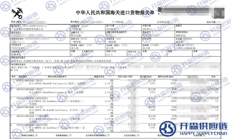 一、廣州機場意大利油畫進(jìn)口報關(guān)代理案例詳情